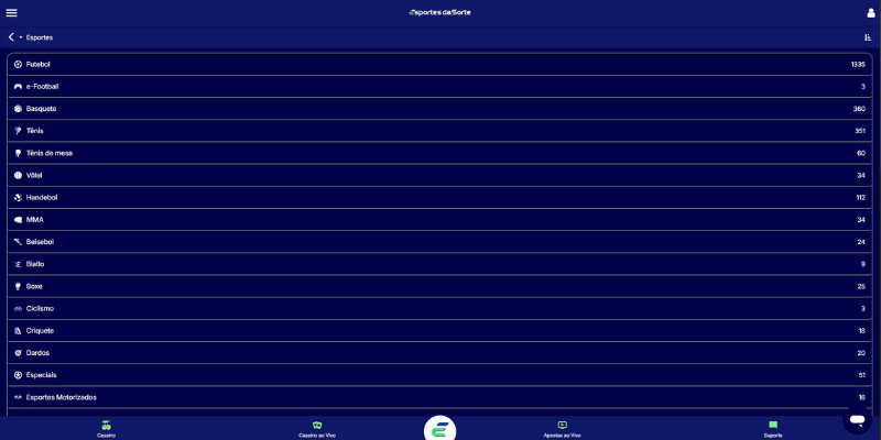 No Esportes da Sorte, você também encontrará uma seção de esportes eletrônicos. Você pode escolher entre os torneios de jogos CS: GO, League of Legends, Dota 2, Valorant, Rainbow Six, King of Glory, Overwatch, Arena of Valor, Halo, WarCraft 3 e StartCraft BroodWar para apostar.